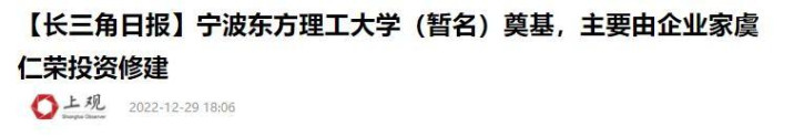 在资本市场,大额套现往往引发股价波动与市场质疑,人们习惯性将其与财富收割、个人享乐挂钩,但虞仁荣的这笔巨款,去向却出人意料,他全部捐赠给宁波东方理工大学教育基金会,用于学校的建设与运营。